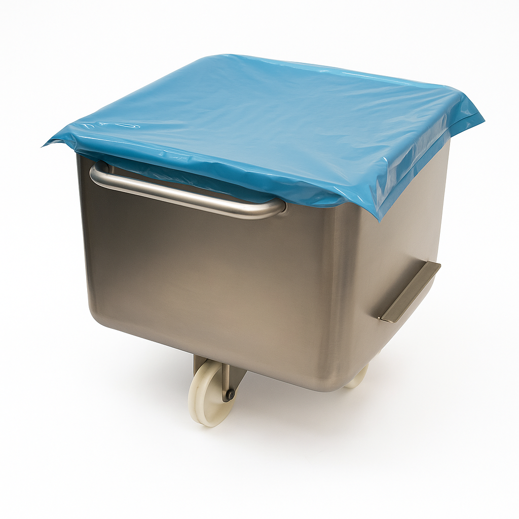 Gaminame HDPE uždangalus 69/33×65 cm, 18 µm, skirtus maisto pramonėje naudojamiems 200 l standartiniams vežimėliams (bugėms). Tai paprastas, pigus ir patikimas būdas apsaugoti produktus nuo dulkių, drėgmės ir kitų aplinkos veiksnių.